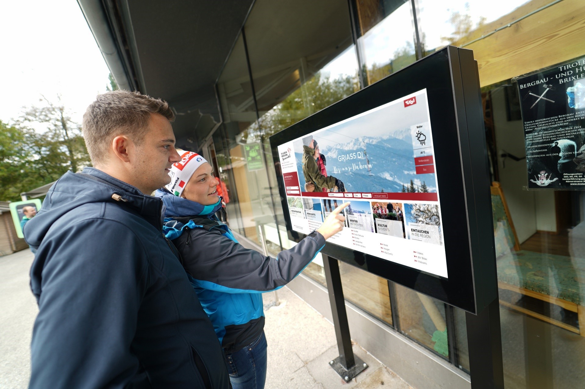 Der wettertaugliche TI Infopoint Outdoor lässt sich so einfach wie ein Smartphone bedienen. Er informiert Gäste im Außenbereich von Tourist Infos, an öffentlichen Plätzen, an Haltestellen und Bahnhöfen, Bergbahnen, Zoos, Themenparks und weiteren Sehenswürdigkeiten.